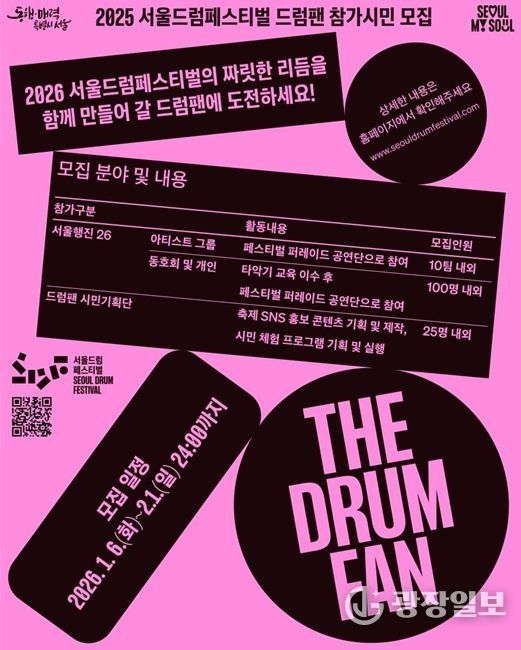 광장일보 주리아 기자 | 서울시는 오는 5월 동대문디자인플라자(DDP)에서 개최되는 ‘2026 서울드럼페스티벌’을 앞두고 축제의 주인공으로 활약할 ‘드럼팬(Drum Fan)’ 시민 참여자를 2월 1일까지 모집한다. 올해 축제는 단순 관람을 넘어 시민이 직접 기획하고 참여하는 ‘시민 주도형’ 축제가 될 것으로 기대된다.