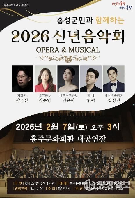 광장일보 이현나 기자 | 홍성군 홍주문화회관은 내달 7일 오후 3시에 ‘홍성군민과 함께하는 2026 신년음악회’를 개최한다고 밝혔다. 이번 음악회는 병오년 새해를 맞아 오페라와 뮤지컬 넘버를 아우르는 다채로운 프로그램으로 관객들과 만날 예정이다.