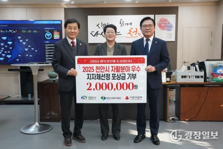 광장일보 이현나 기자 | 천안시는 보건복지부 주관 ‘2025년 자활 분야 우수지자체’ 선정 포상금 200만 원을 천안시복지재단에 기부했다고 14일 밝혔다.
