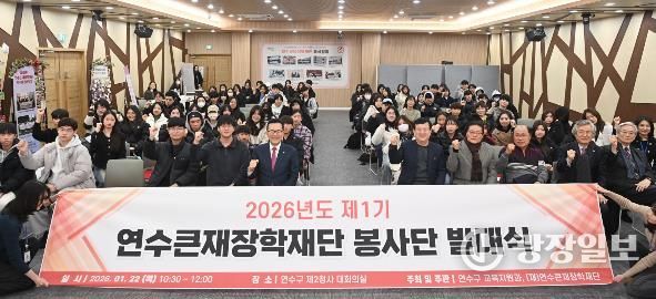 연수구 관계자는 “장학생 간 교류를 통해 함께 성장하는 미래 인재 양성이 봉사단 운영의 취지”라며 “이번 봉사단 발대식을 계기로 장학생들이 나눔과 봉사의 가치를 직접 체험하고, 지역사회에 대한 애향심을 키울 수 있길 기대한다.”라고 말했다.