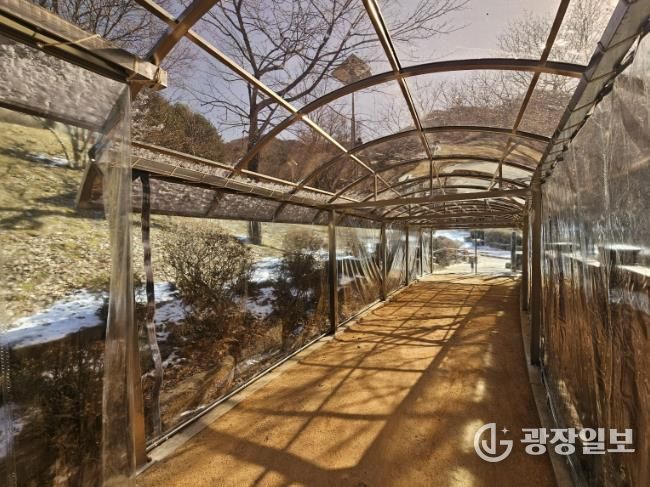 시는 2024년 조성된 병목안시민공원 맨발산책길 구간에 총 160m 길이의 지붕 캐노피와 방한 비닐막을 설치해 기온이 낮은 겨울철에도 체온 유지와 안전한 보행이 가능하도록 했다.