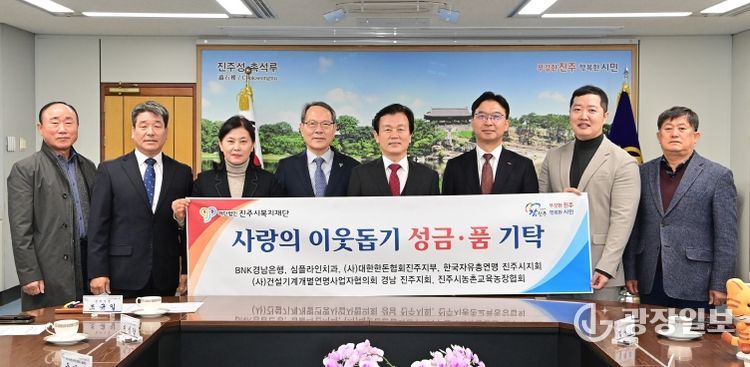 광장일보 주재영 기자 | 진주시복지재단(이사장 이성갑)은 30일 진주시청 기업인의 방에서 지역사회 기업·기관·단체의 어려운 이웃돕기 성금품 기탁식을 가졌다.