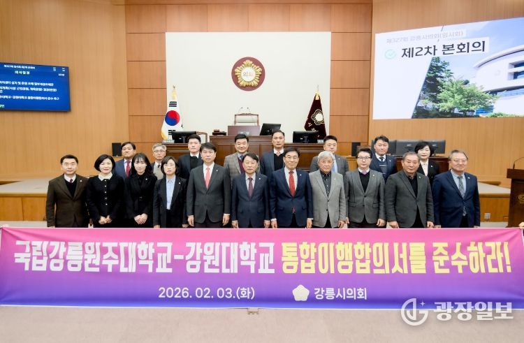 광장일보 이현나 기자 | 강릉시의회는 3일 제327회 강릉시의회(임시회) 제2차 본회의에서 조대영 의원의 대표발의로 ‘국립강릉원주대학교-강원대학교 통합이행합의서 준수 촉구 성명서’를 발의했다.