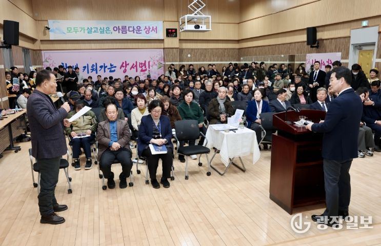 광장일보 주재영 기자 | 부안군 상서면은 3일 상서면 상생문화복지센터에서 권익현 군수와 상서면민 100여명과 함께하는 희망소통대화의 시간을 가졌다.