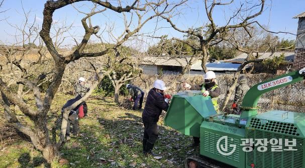 파쇄지원단은 과수 잔가지, 고춧대 같은 영농부산물을 파쇄해 농가의 일손을 돕고, 불법소각 예방, 미세먼지 저감 등을 동시에 이루는 영암군의 제도.