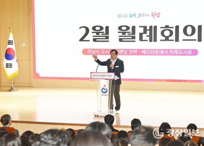 광장일보 주재영 기자 | 하남시는 4일 별관 대강당에서 올해 첫 월례회의를 개최하고, 캠프콜번 개발 본격화 등 시정 주요 성과를 공유하며 ‘글로벌 경제 중심 도시 하남’을 향한 비전을 제시했다.