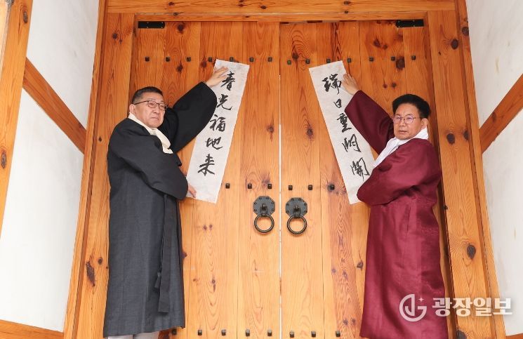 박 구청장은 행사에 앞서 한복 두루마기를 착용한 뒤, 마포문화원장 등 참석자들과 함께 입춘축을 광흥당 대문에 게첩하고 기념촬영을 진행했다.