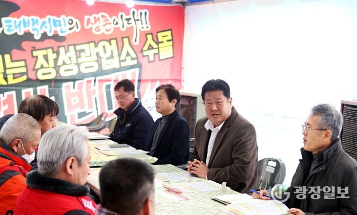 이상호 태백시장은 지난 3일 장성광업소 수몰 반대 투쟁위원회 야외 투쟁 본부를 찾아 “한파에도 태백의 역사이자 대한민국 산업화의 상징인 장성광업소를 지키고자 하는 지역주민의 투쟁 현실에 마음이 매우 무겁다”며 “지역주민의 의견이 최우선인 만큼 지속적으로 소통하며 의견을 따르겠다”고 밝혔다.