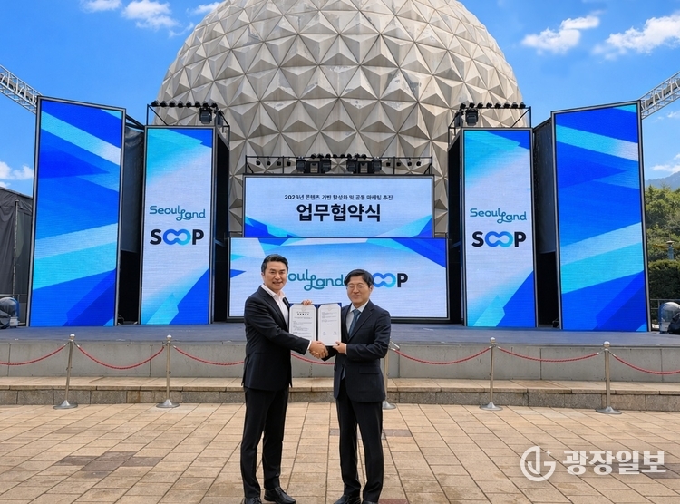 광장일보= 주재영 기자 | 서울랜드는 5일(목), 라이브 스트리밍 플랫폼 SOOP(숲)과 콘텐츠 경쟁력 강화 및 공동 마케팅 추진을 위한 업무협약(MOU)을 체결했다. 이날 협약식에는 서울랜드 신상철 대표이사와 SOOP 최영우 대표이사를 비롯해 양사 주요 임원과 관계자들이 참석해 협력 의지를 공유했다.