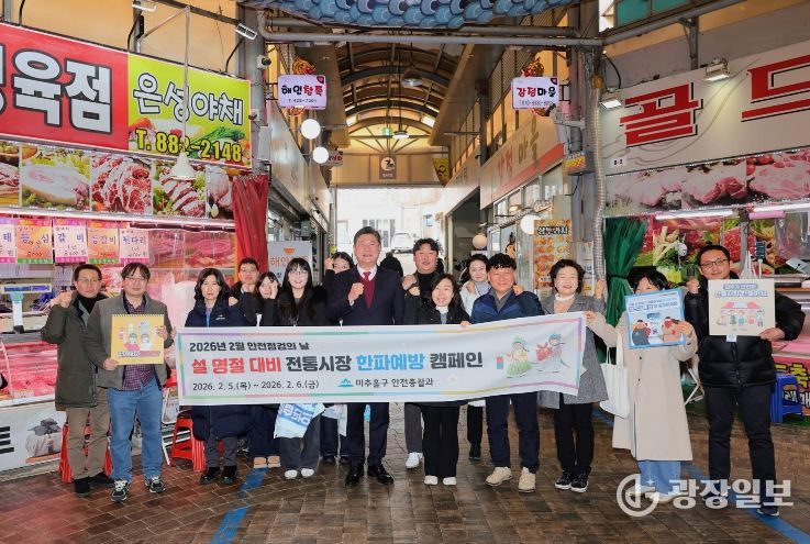 광장일보 주재영 기자 | 인천 미추홀구는 설 명절을 앞두고 5일부터 6일까지 총 이틀간 관내 전통시장을 방문해 ‘동절기 한파 예방 캠페인 및 화재 대비 집중 안전 점검’을 실시한다.
