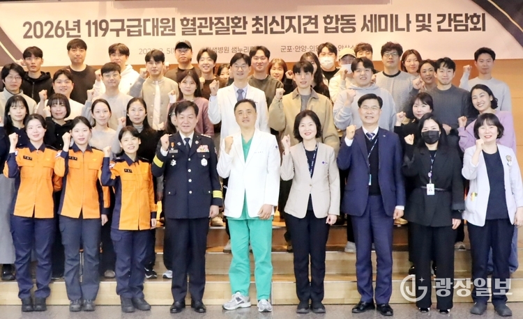 광장일보 =주재영 기자 | 군포소방서(서장 김인겸)는 5일 군포 지샘병원 샘누리홀에서 열린 ‘혈관질환 최신지견 교육 및 협력 간담회’에서 2025년 의정 갈등 대응 및 구급상황관리 유공자에 대한 표창장(소방청장상) 전수와 지샘병원 감사패 수여를 함께 진행했다.