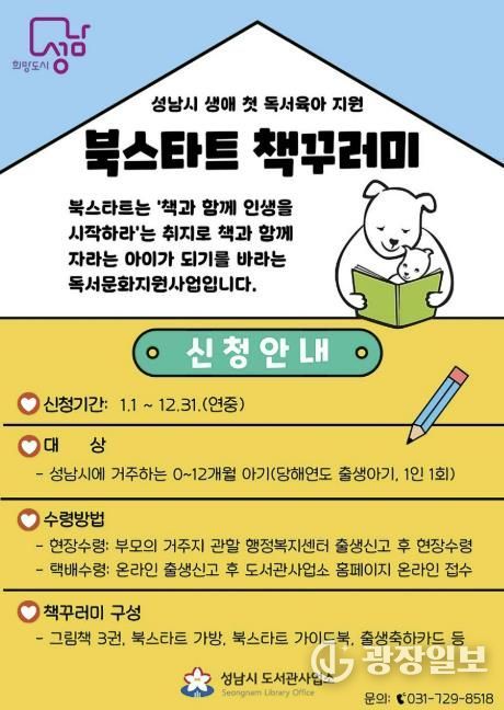 광장일보 주재영 기자 | 성남시는 올해 출생아 가정을 대상으로 ‘북스타트(Book Start) 책 꾸러미 지원사업’을 시행한다고 6일 밝혔다.
