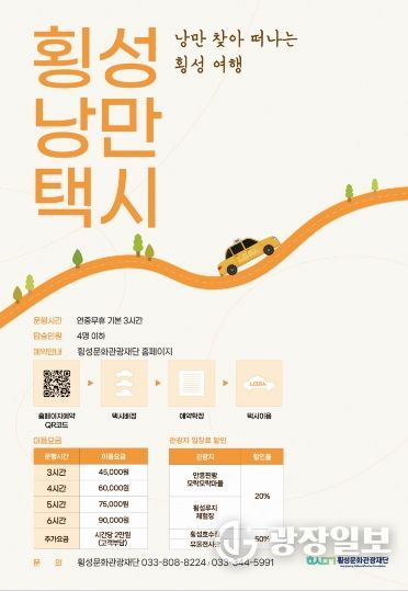 한편, 낭만택시 이용 방법과 상세한 할인 일정은 향후 횡성문화관광재단 누리집(홈페이지)을 통해 공지될 예정이다.