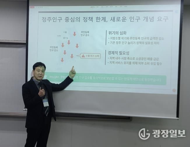 광장일보 주재영 기자 | (재)고창식품산업연구원 GFI 미래정책연구센터는 지난 5일 중앙대에서 열린 ‘2026 경제학 공동학술대회’에 참가해 ‘생활인구 증가에 따른 경제적 법적 편익의 한계와 개선’을 주제로 발표했다. 주민등록 인구 중심 정책의 한계를 보완할 대안으로 ‘생활인구’의 중요성을 제기했다.