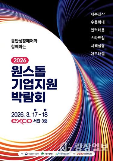 광장일보 주재영 기자 | 대구광역시는 지역기업의 지속 가능한 성장을 지원하기 위해 오는 3월 17일부터 18일까지 EXCO 서관 3층에서 열리는 ‘동반성장페어와 함께하는 2026 원스톱 기업지원박람회’ 참가기업을 모집한다.