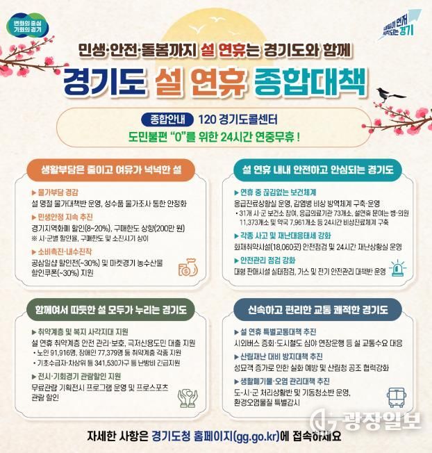 광장일보 주재영 기자 | 경기도가 도민들이 따뜻하고 편안한 명절을 보낼 수 있도록 ‘설 연휴 종합대책’을 추진한다.