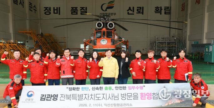 김관영 전북자치도지사는 “익산산림항공관리소는 전북 산불 대응의 핵심 거점으로, 현장에서 묵묵히 임무를 수행하는 여러분이 도민 안전의 버팀목”이라며 “항공 진화 공조가 원활히 이뤄지도록 지속적인 협조를 부탁드리고, 도에서도 현장을 적극 지원하겠다”고 말했다.