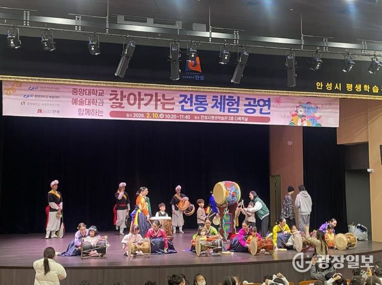 광장일보 주재영 기자 | 안성시는 2월 10일 오전 10시 안성시평생학습관 2층 다목적실에서 열린 ‘찾아가는 전통 체험 공연 시즌 2 – 춤과 연희가 함께하는 무대’가 150여 명의 시민이 함께한 가운데 큰 호응 속에 성황리에 마무리됐다고 밝혔다.