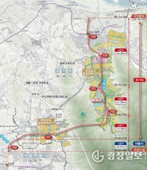 광장일보 주재영 기자 | 경기도는 송파하남선 광역철도 건설사업의 도 시행 구간인 2·3·4공구에 대한 일괄입찰(Turn Key)이 성립됐다고 11일 밝혔다.