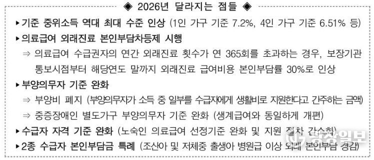 특히 2026년에는 *기준 중위소득이 역대 최대 수준으로 인상됨에 따라 의료급여 수급 대상이 확대된다.