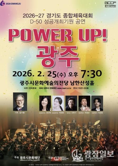 광장일보 주재영 기자 | 광주시문화재단은 오는 25일 ‘제72회 경기도체육대회 및 제16회 경기도장애인체육대회 2026 광주’의 성공 개최를 기원하고 대회 개막 50일 전을 기념하기 위한 ‘파워업! 광주’ 공연을 개최한다고 13일 밝혔다.