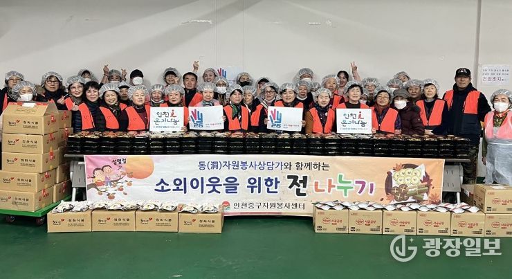 광장일보 주재영 기자 | 인천광역시중구자원봉사센터는 지난 11일 민족 고유의 명절인 ‘설’을 맞아 ‘설 명절 음식 나눔 활동’을 전개했다.