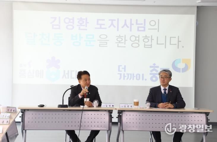 김 지사는 이날 통합돌봄 관계자와의 오찬간담회를 시작으로 달천동 행정복지센터를 방문해 생활 SOC사업 운영 현장을 확인하고 주민 주도의 도시재생 사업의 성과를 격려했다.