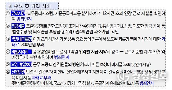 이와 함께 연장·야간·휴일근로 수당 등 임금 미지급 5억 6천4백만원에 대해서도 시정지시했다.