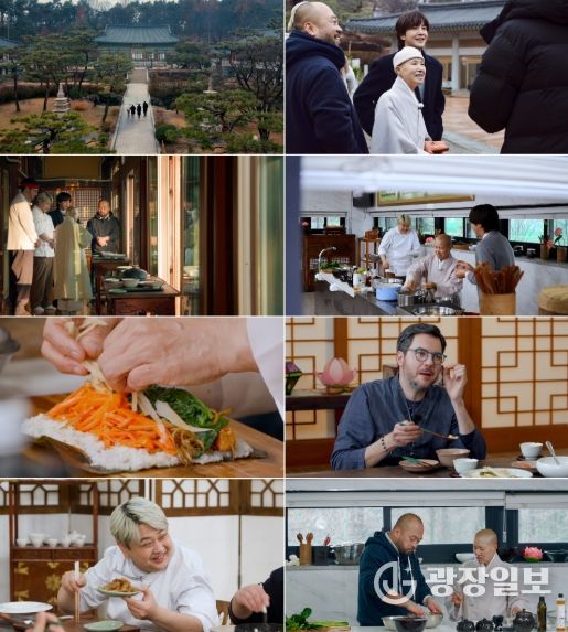 도심 속 사찰, 봉녕사를 찾은 MC 장근석과 윤남노, 파브리, 데이비드 리 셰프는 ‘국내 사찰음식 1호 명장’ 선재스님을 만나 사찰음식에 담긴 철학을 배우는 시간을 갖는다. 스님이 직접 담근 ‘수수 고추장’을 활용한 나물 요리를 비롯해 비법 채수로 맛을 낸 연근 요리까지, 선재스님의 노하우가 자세히 공개돼 모두의 기대를 한껏 끌어올린다. 이를 맛본 윤남노는 “태어나서 처음 먹어본다”며 폭풍 먹방을 선보여 눈길을 끈다.