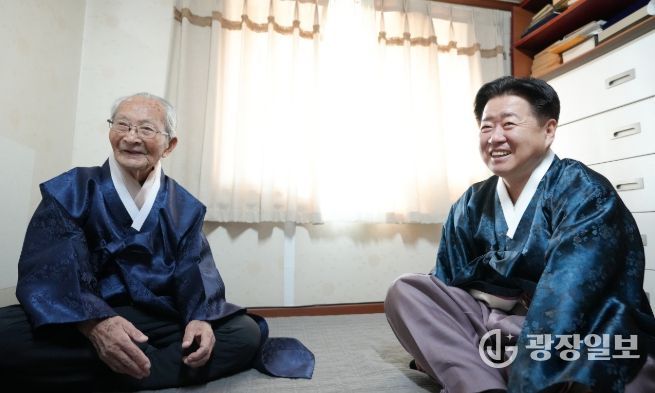 광장일보 주재영 기자 | 오영훈 제주특별자치도지사는 설 명절을 맞아 18일 도내 유일한 생존 독립유공자인 강태선 애국지사의 자택을 방문해 세배하고 새해 인사를 나눴다.