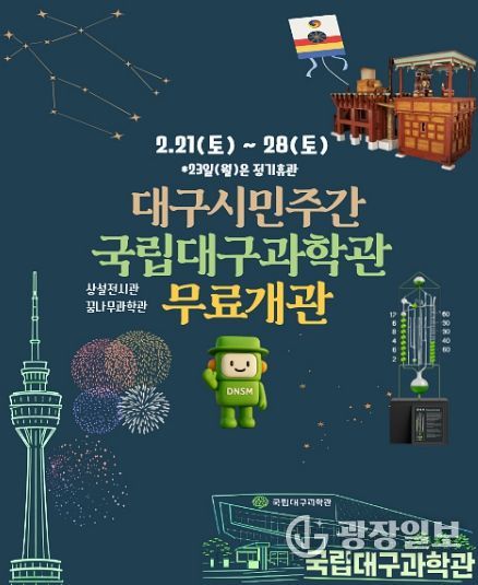 광장일보 주재영 기자 | 국립대구과학관은 ‘2026 대구시민주간’을 맞아 대구시민의 자긍심을 높이고 과학문화 향유 기회를 확대하고자 해당 기간 동안 상설전시관 및 꿈나무과학관을 무료로 개관한다.