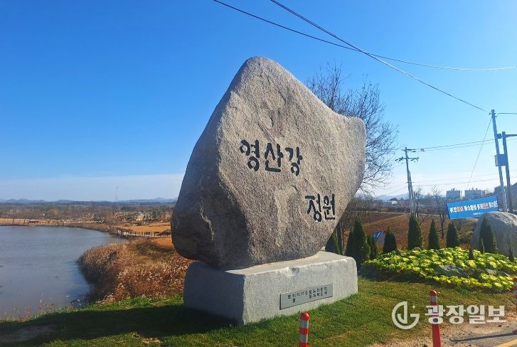 표지석에는 ‘영산강정원’ 한글 서체가 새겨져 정원의 상징성과 정체성을 한층 강화했다.