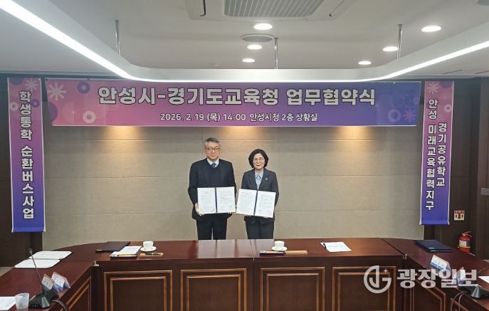 광장일보 주재영 기자 | 경기도안성교육지원청은 안성시와 함께 중·고등 학생들의 안전하고 편리한 등·하교를 위해 학생통학 순환버스 사업 추진을 위한 업무협약을 체결했다.