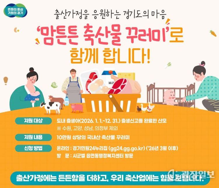 광장일보 주재영 기자 | 경기도는 도내 27개 시군과 함께 ‘2026년도 맘튼튼 축산물꾸러미 지원사업’을 오는 3월부터 추진한다.