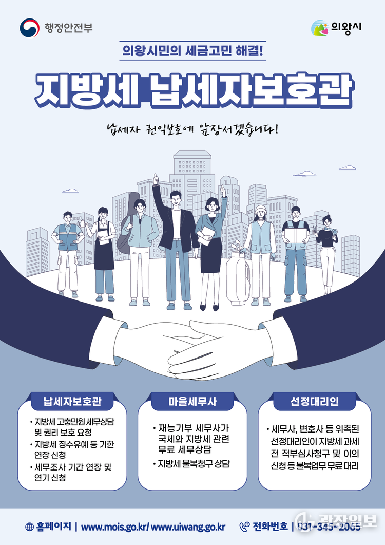 의왕시= 주재영 기자 | 의왕시(시장 김성제)가 지방세 납부에 어려움을 겪는 시민들의 권리 보호와 고충 해소를 위해 ‘지방세 납세자보호관 제도’를 연중 운영하고 있다.