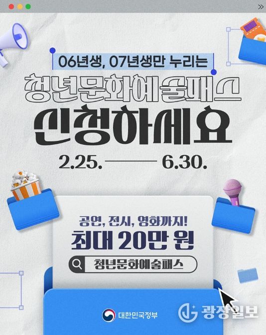 광장일보 주재영 기자 | 06년생, 07년생만 누리는 '청년문화예술패스' 신청하세요.