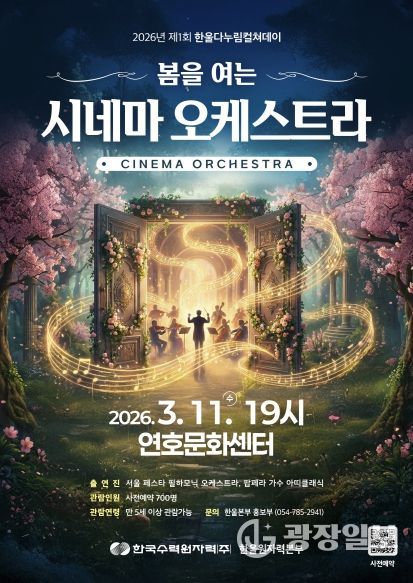 광장일보 주재영 기자 | 한국수력원자력(주) 한울원자력본부는 3월 11일 19시 울진군 연호문화센터에서 제1회 한울다누림컬쳐데이 '봄을 여는 시네마 오케스트라'를 개최한다.