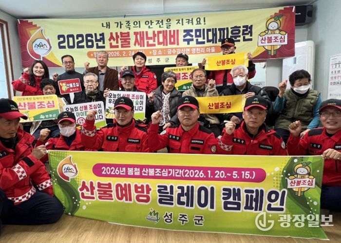 광장일보 주재영 기자 | 성주군은 24일 금수강산면 영천리 마을회관에서 산불취약마을 주민을 대상으로 '산불재난 대응 주민대피 훈련'을 실시했다고 밝혔다.