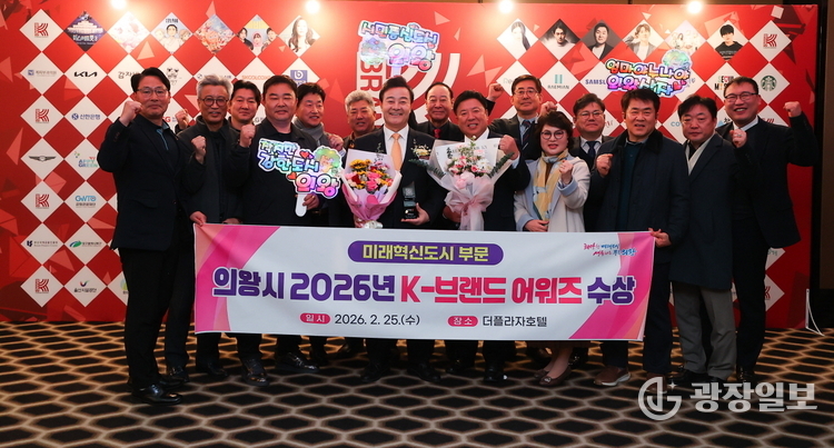 의왕시= 주재영 기자 | 의왕시(시장 김성제)가 2월 25일 서울 더플라자호텔에서 열린 ‘2026 K-브랜드 어워즈’ 시상식에서 ‘K-도시 미래혁신도시 부문’에 선정됐다.