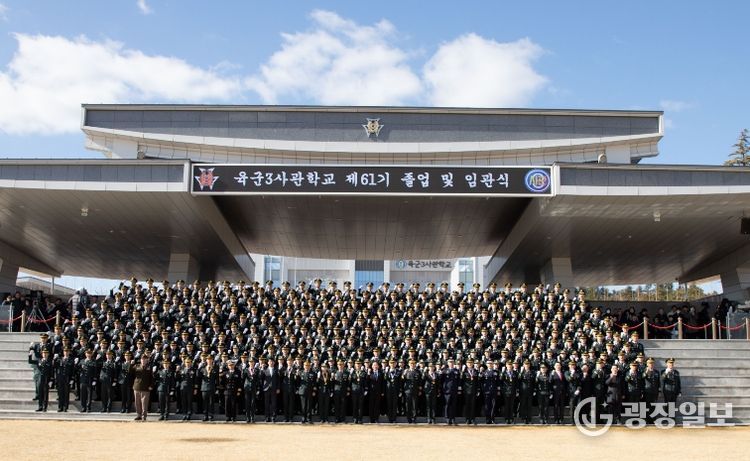 광장일보 주재영 기자 | 육군3사관학교는 25일 교내 충성연병장에서 이두희 국방부차관 주관으로 제61기 졸업 및 임관식을 거행했다. 행사에는 가족과 친지, 총동문회, 학교 관계자 등 3천여 명이 참석해 신임장교들의 임관을 축하하며 격려했다.