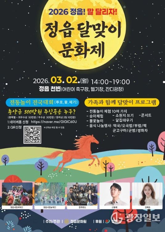 광장일보 주재영 기자 | 정읍문화원이 오는 3월 2일 정읍 천변 어린이 축구장 일원에서 열리는 ‘2026 정읍 달맞이 문화제’의 성공적인 개최를 위해 막바지 준비에 총력을 기울이고 있다.