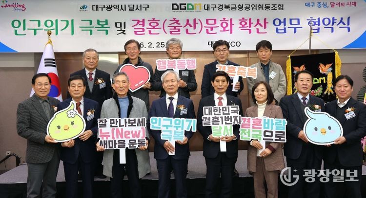 광장일보 주재영 기자 | 대구 달서구는 25일 EXCO에서 대구경북금형공업협동조합(이사장 박만희)과 인구위기 극복 및 결혼·출산문화 확산을 위한 업무협약을 체결했다.