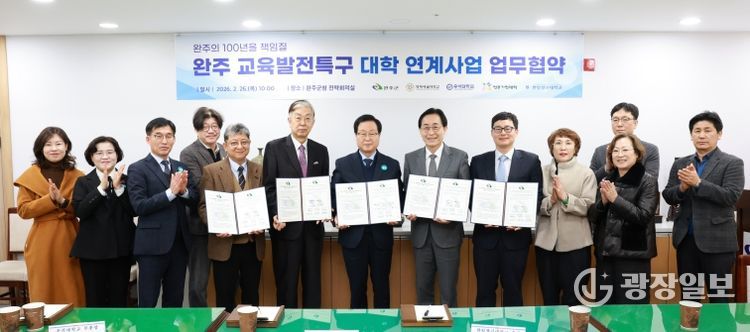 광장일보 주재영 기자 | 완주군이 지역의 미래를 책임질 인재를 양성하고 교육 분야의 핵심 동반자 관계를 굳건히 하기 위해 관내 대학들과 손을 잡았다.
