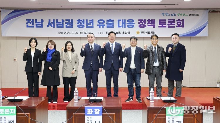 광장일보 주재영 기자 | 전라남도의회는 2026년 2월 26일 오후 2시 도의회 초의실에서 ‘전남 서남권 청년 유출 대응 정책토론회’를 성공적으로 개최했다고 밝혔다.