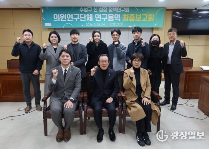 광장일보 주재영 기자 | 수성구의회 의원연구단체 ‘수성구 신 성장 정책연구회’는 지난 25일 의회 2층 회의실에서 '지속 가능한 발전을 위한 미래 신성장 동력 발굴' 연구용역 최종보고회를 개최했다.