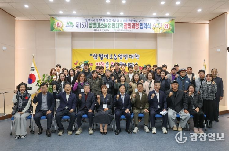 광장일보 주재영 기자 | 성주군 농업기술센터는 2월 26일 센터 대강당에서 교육생이 참석한 가운데 농업·농촌을 선도하는 전문 농업인 양성을 위한‘2026년 제15기 참별미소농업인대학 참외과정 입학식’을 개최했다.