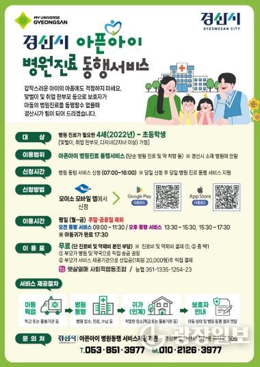 광장일보 주재영 기자 | 경산시는 맞벌이 가정과 양육 공백 가정의 돌봄 부담을 덜기 위해 ‘아픈 아이 병원 동행 서비스’를 3월부터 본격 운영한다고 밝혔다.