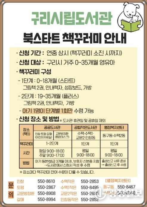 광장일보 주재영 기자 | 구리시는 책을 매개로 부모와 아이가 교감할 수 있는 ‘북스타트 책꾸러미’ 사업이 시민들로부터 큰 호응을 얻고 있다고 밝혔다.