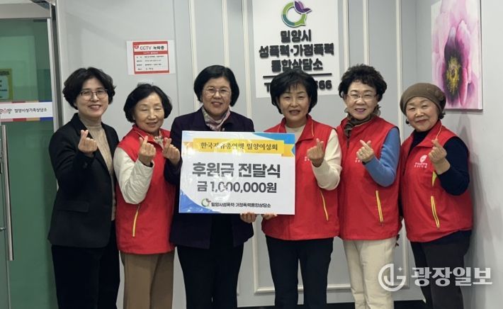 광장일보 주재영 기자 | 한국자유총연맹밀양여성회(회장 장명희)는 3일, 다가오는 ‘3.8 세계 여성의 날’을 기념해 지역 내 여성 지원을 위한 기부금 100만원을 밀양시성폭력·가정폭력통합상담소에 전달했다.