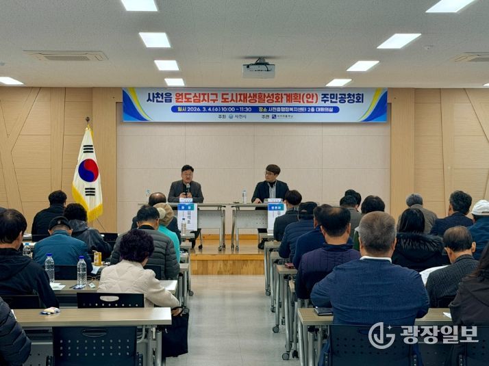광장일보 주재영 기자 | 사천시는 4일 사천읍 행정복지센터 2층 회의실에서 도시재생 전문가와 지역 주민들의 다양한 의견을 수렴하기 위한 ‘사천읍 원도심지구 도시재생활성화계획(안) 수립 주민공청회’를 개최했다.